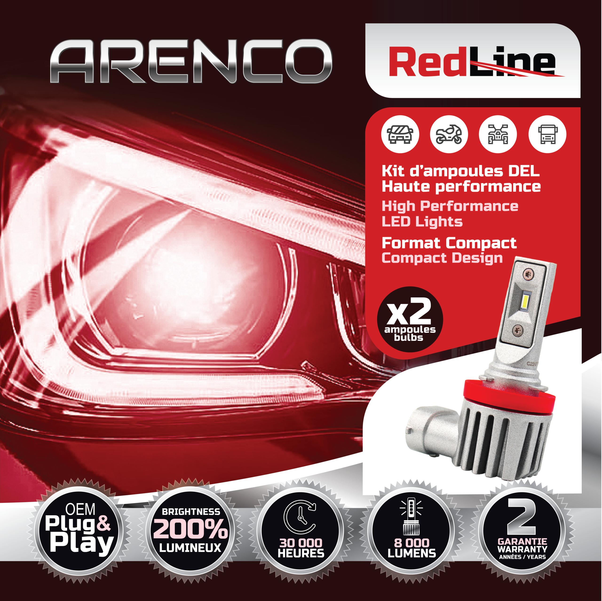 Choose the Arenco Redline High-Performance LED Conversion Kit for superior visibility and enduring quality.