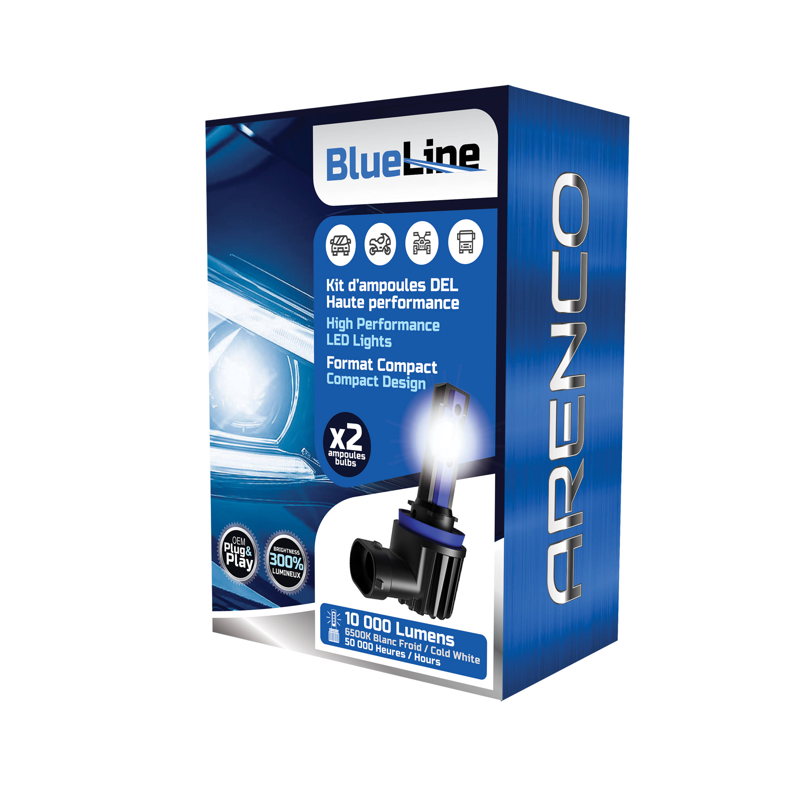 With the Arenco BlueLine High-Performance LED Bulb Kit, the road lights up like never before. Designed for demanding driving enthusiasts, this revolutionary kit delivers exceptional performance in a compact form.