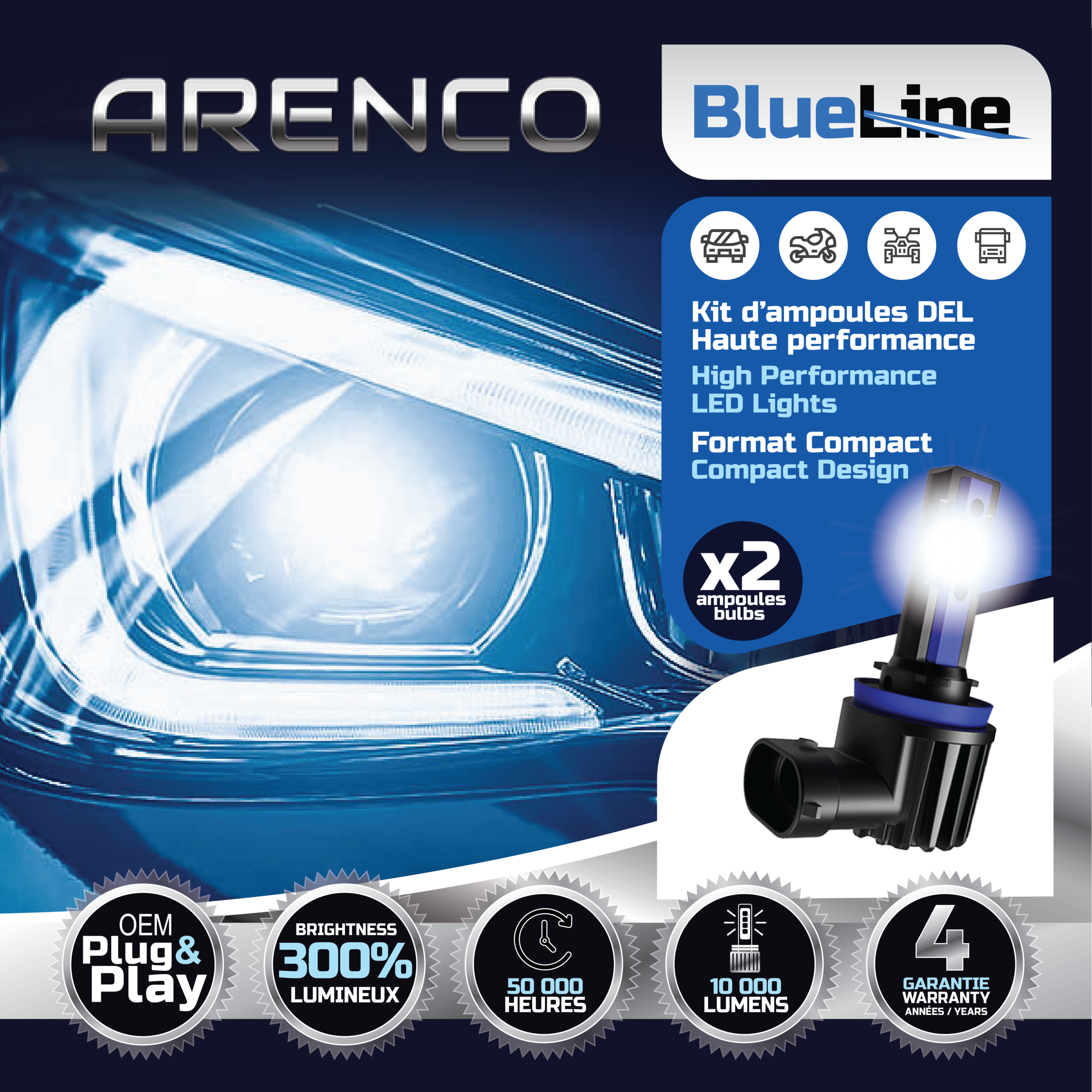 Optez pour le kit d’ampoules DEL Haute Performance Arenco Blueline et découvrez une conduite plus sûre et plus confortable, avec une visibilité exceptionnelle à chaque tournant de la route.